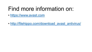 filehippo.com › es › download_avast-antivirusAvast Free Antivirus para Windows - FileHippo Sep 20, 2021 · El análisis de archivos ejecutables es unas dos veces más rápido. El uso de memoria mejorado hace que Avast! Free Antivirus cargue menos su sistema, con lo que usted podrá seguir haciendo otras tareas con más rapidez. Resumen. Avast! Free Antivirus es claramente uno de los mejores gestores totales de seguridad gratuitos disponibles.