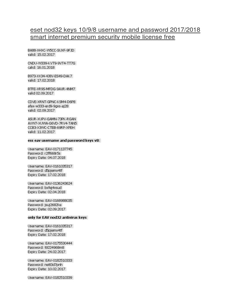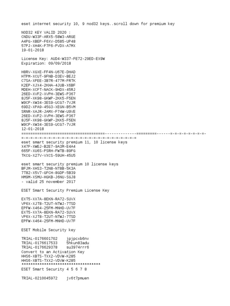 Eset Nod32 Antivirus Keys Valid 2020 | PDF | Computer ...